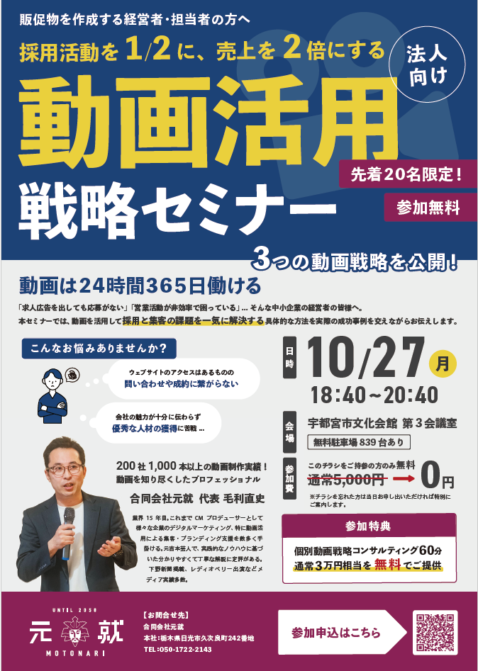 「採用活動を1/2に、売上を2倍にする 動画活用戦略セミナー」